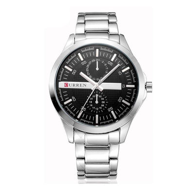 RELOJ CURREN PLACA PLATEADO F/NEGRO