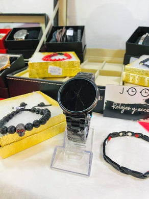 RELOJ GENEVA CORD MALLA NEGRO C/AZUL