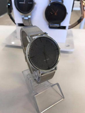 RELOJ MINIMAL PLATEADO FONDO NEGRO