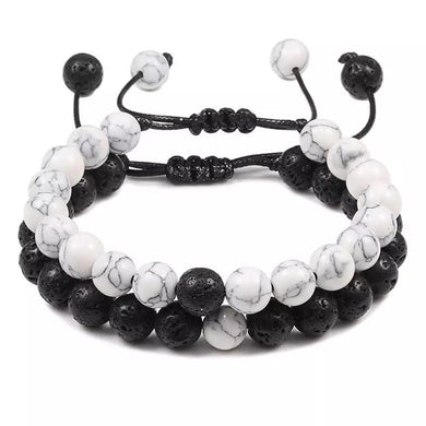 Set Pulseras Distancia Iman Negra/blanca corazon