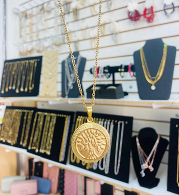 COLLAR VINTAGE ARBOL VERDE ROSA